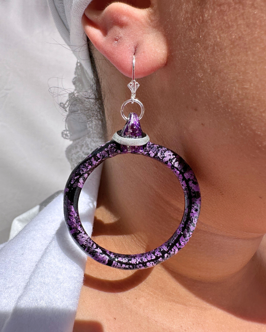 "Purple Patch Work" Hoop Earrings