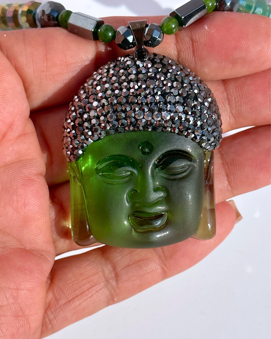 Green Tranquil Buddha Treasures Necklace