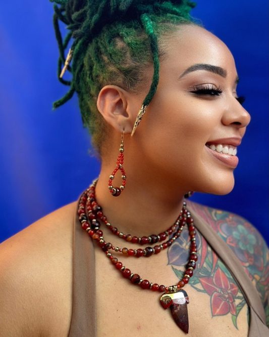 Red Multi-Strand Tiger's Eye and Carnelian Necklace