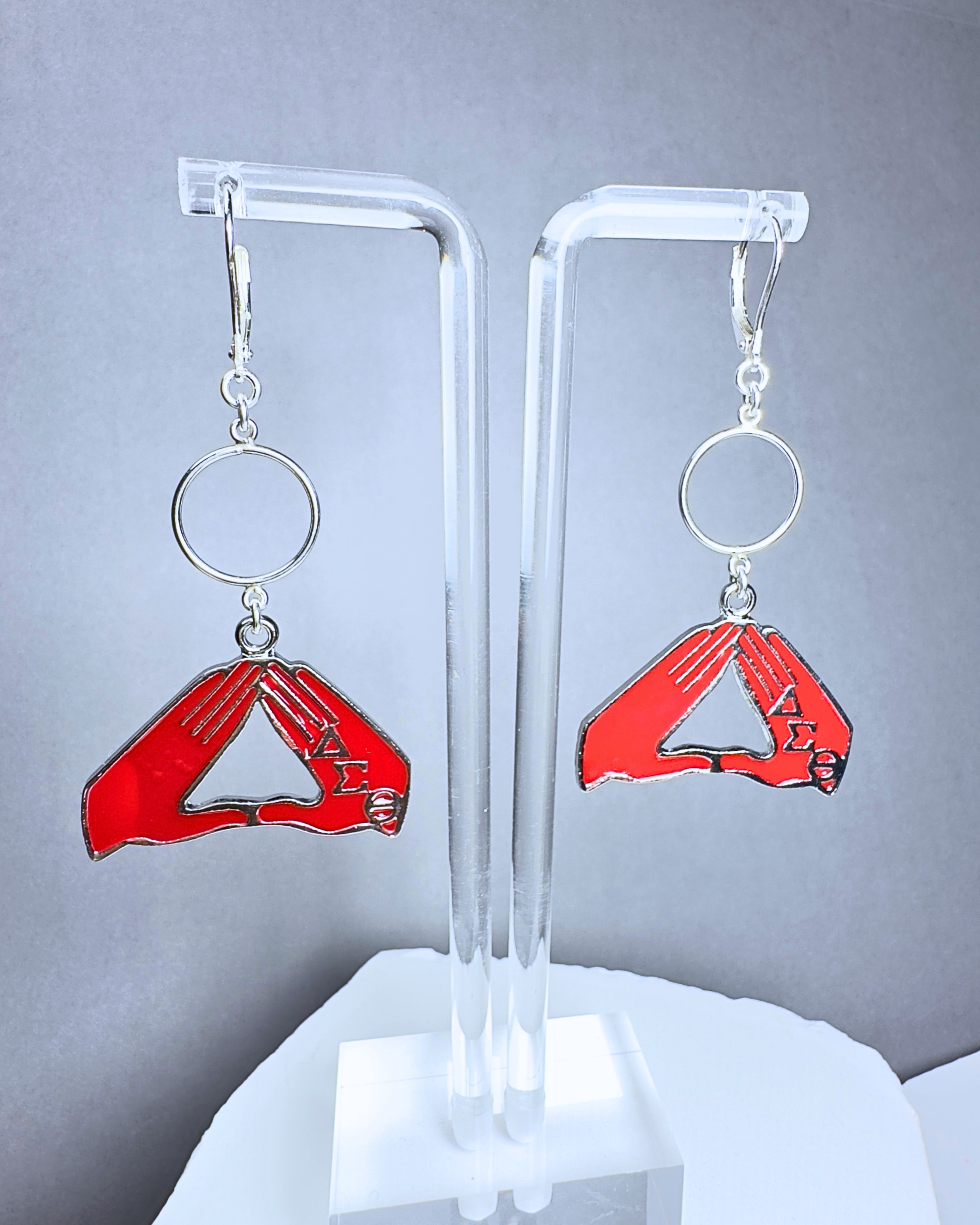 Red DELTA hands w.med silver hoop w/silver lever backs