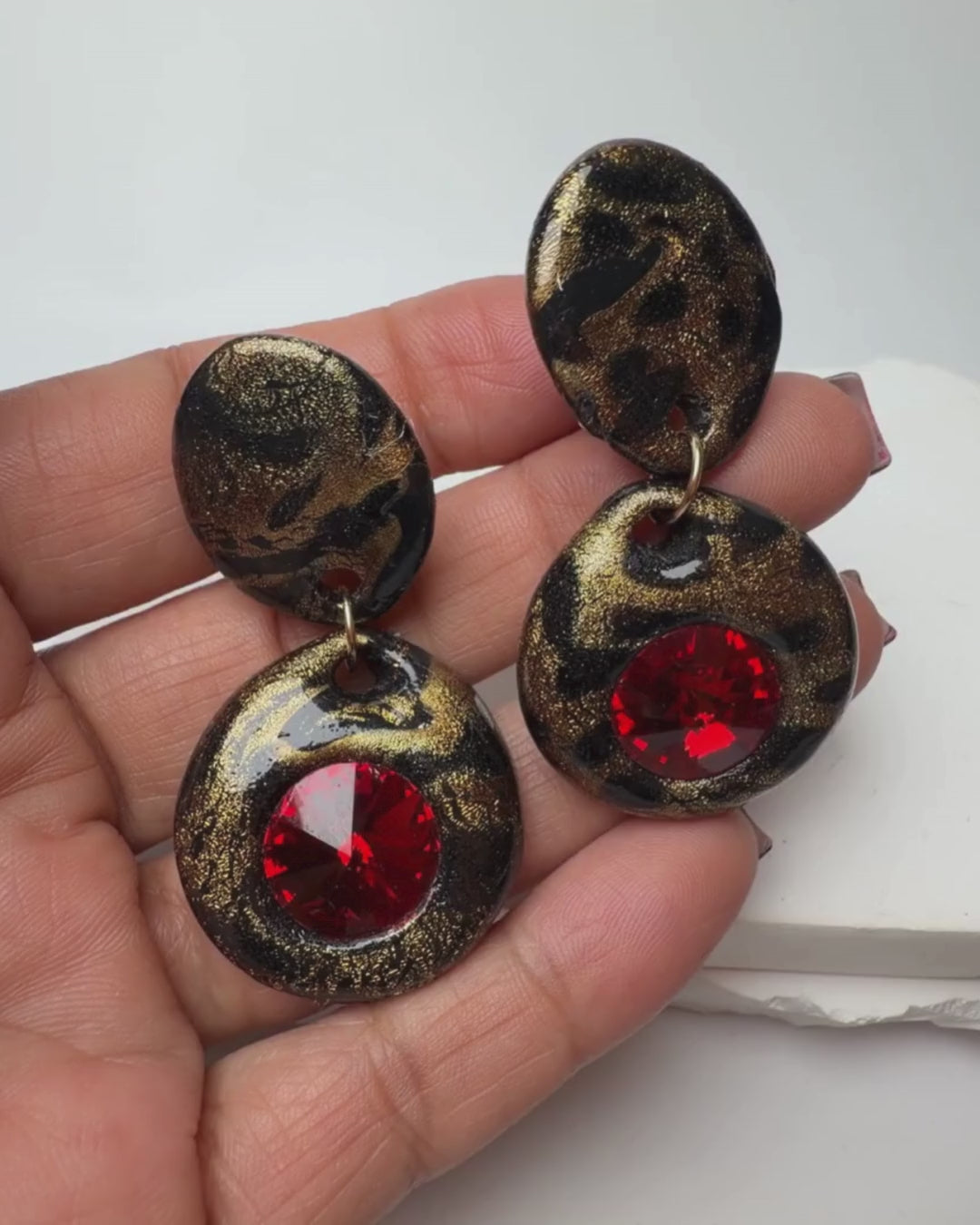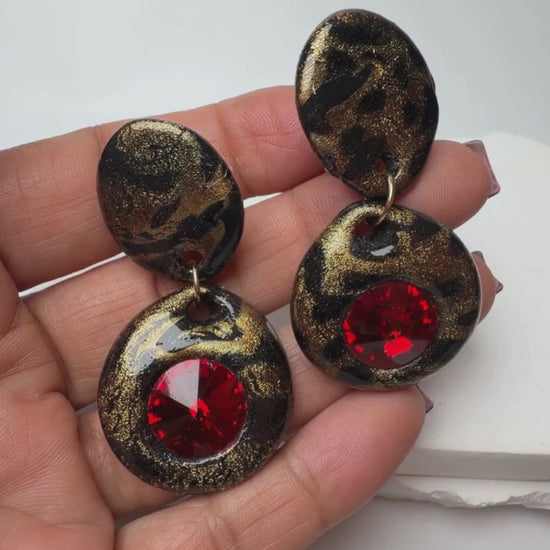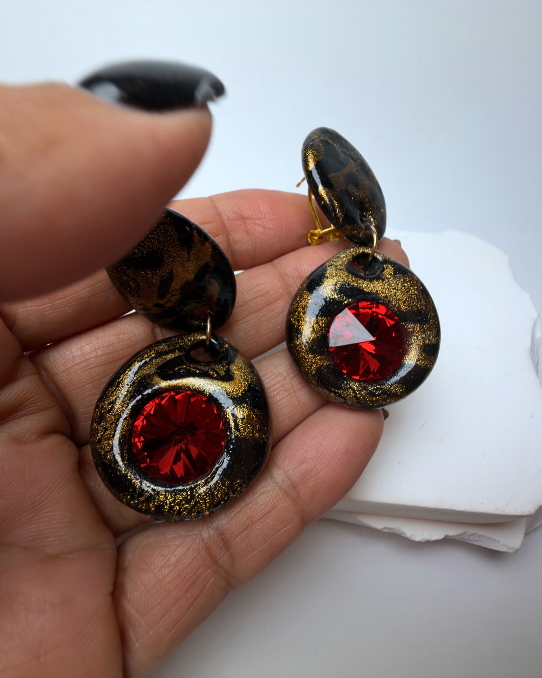 Ms. Paula Earring in gold leopard setting w/ red crystals, finer nail Post backs