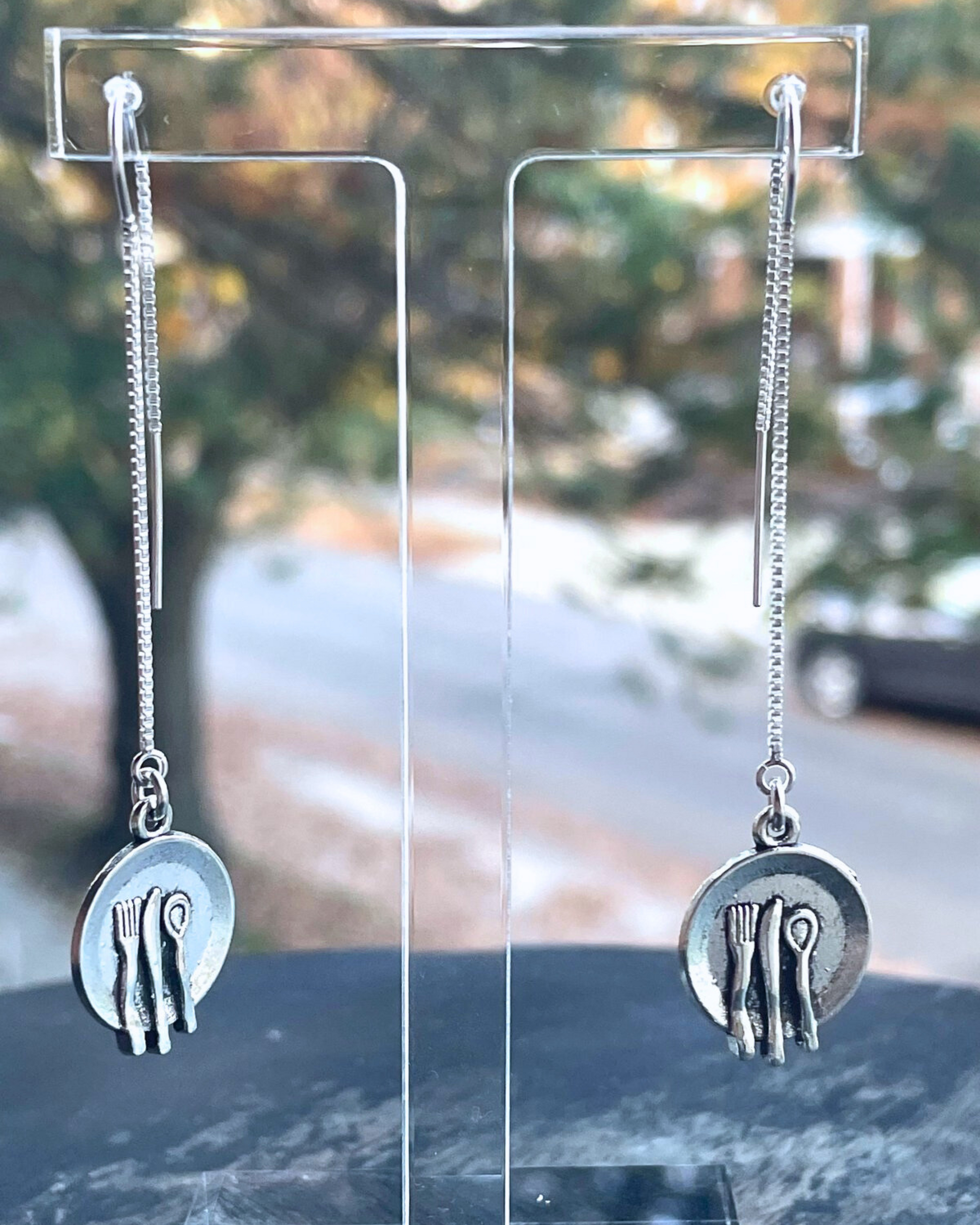 Sterling Silver 2 1/2 inch Threader w/ antique silver 1 inch charm. Celebrating Chefs!
